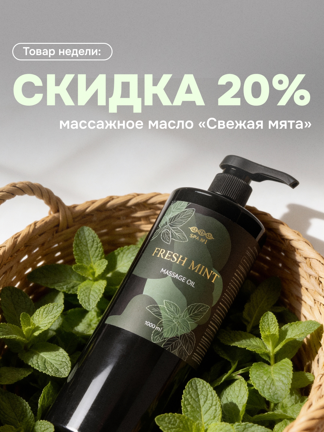 Скидка 20% с 6 по 11 января на массажное масло «Свежая мята»