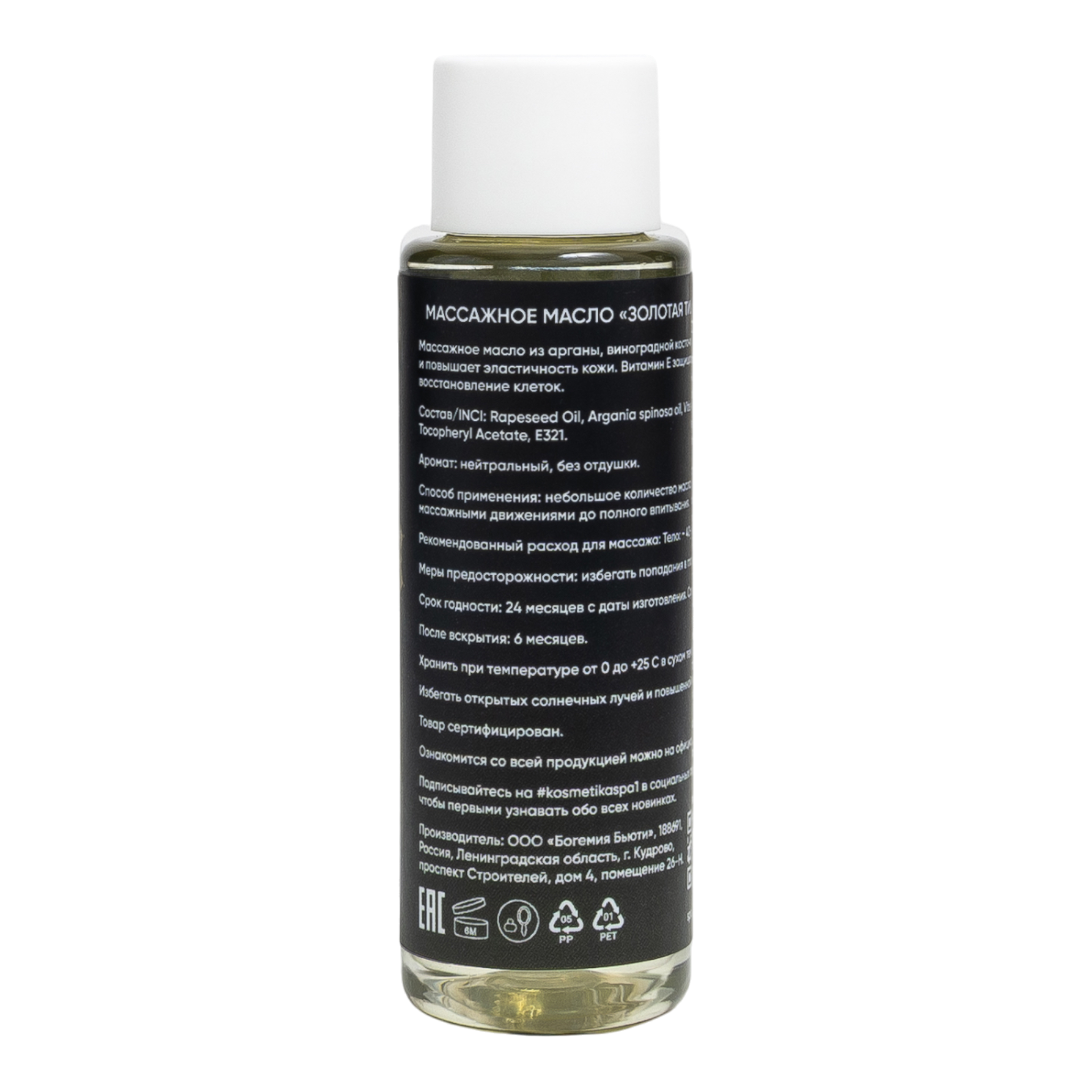 Массажное аргановое масло Золотая тишина (питательное масло без отдушки), 30 мл
